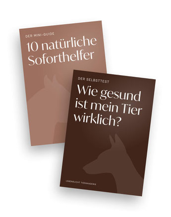Mit dem Mini-Guide hast Du außerdem 10 natürliche Helfer immer griffbereit, um kleine Beschwerden sanft und effektiv zu lindern – für mehr Wohlbefinden und Gesundheit Deines Tieres.